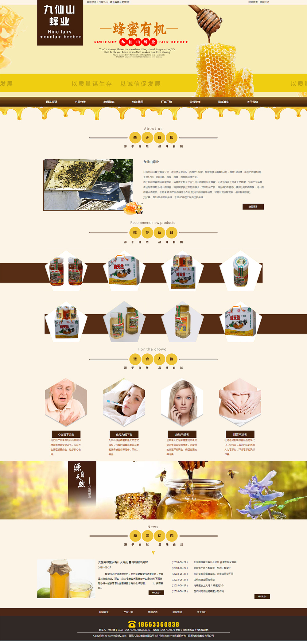 • 日照九仙山蜂業(yè)有限公司,注冊(cè)資金300萬,養(yǎng)蜂戶104家,擁有規(guī)?;B(yǎng)蜂場(chǎng)6處,蜂群1500箱,年生產(chǎn)蜂蜜10噸、王漿1.5噸、花粉1噸。蜂膠、蜂蛹、蜂巢等品種齊全。 由于目前蜂蜜市場(chǎng)真假難辨,消費(fèi)者大都無法區(qū)分天然蜜與加工蜂蜜,無法選擇真正的天然蜂蜜,為向廣大消費(fèi)者證明本蜂場(chǎng)為天然蜂蜜,特去國(guó)家農(nóng)業(yè)部檢測(cè)多次,對(duì)本場(chǎng)所產(chǎn)新、陳(發(fā)酵)蜂蜜進(jìn)行多次檢測(cè)所得數(shù)據(jù),天然蜂蜜永不變質(zhì)。公司承諾:本產(chǎn)品不滿意永久包退(天然蜂蜜易結(jié)晶、可能出現(xiàn)發(fā)酵現(xiàn)象,但不影響質(zhì)量)。